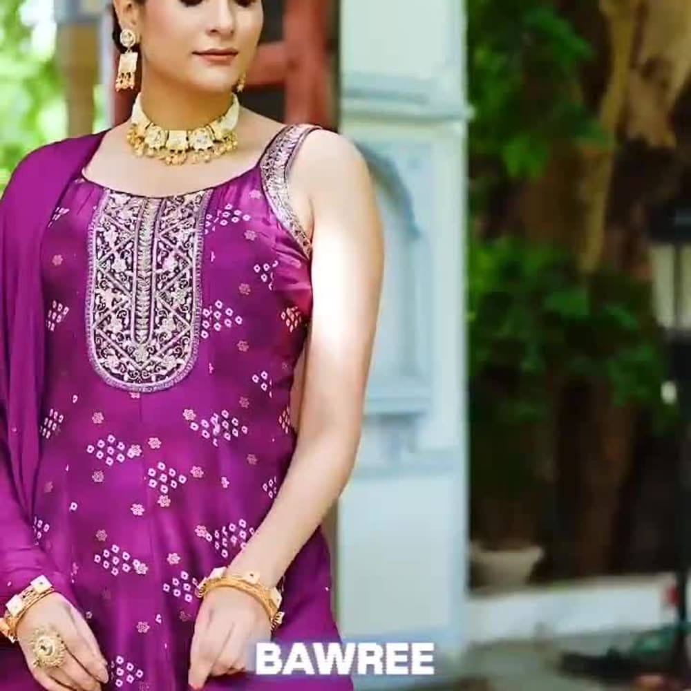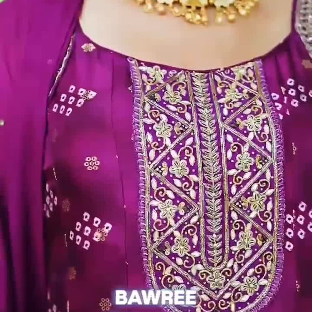 Purple with white accents and gold detailing Anarkali Suit with Dupatta