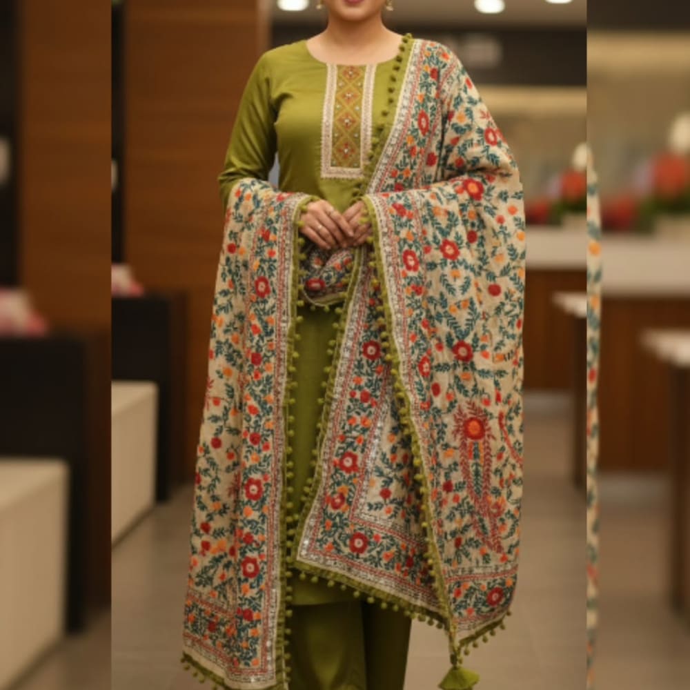 Olive Green, Beige, Red, Orange, Green Salwar Kameez with Dupatta