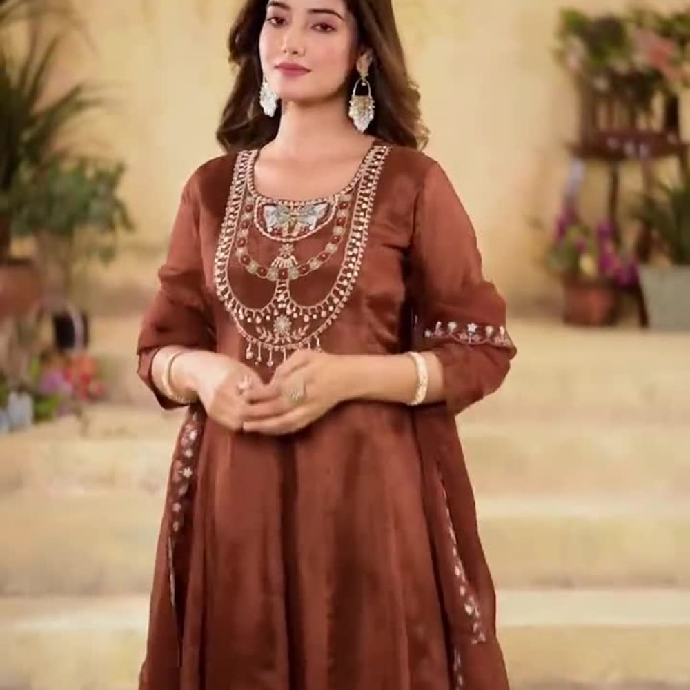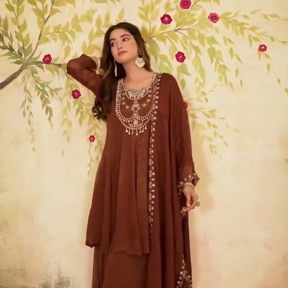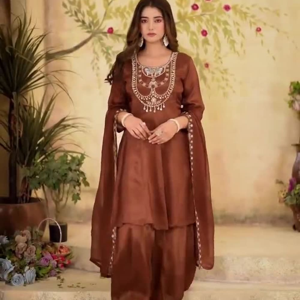 Brown Kurta with Palazzo and Dupatta
