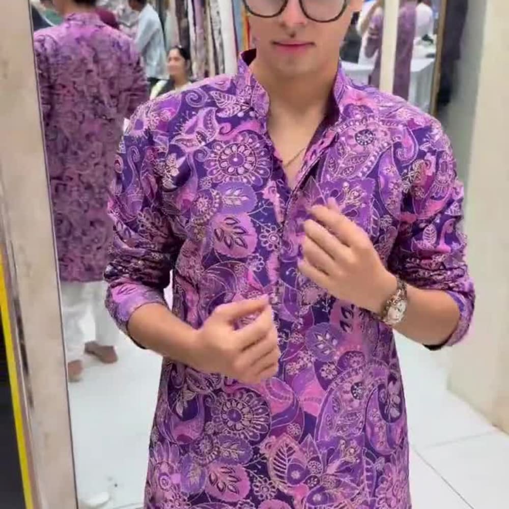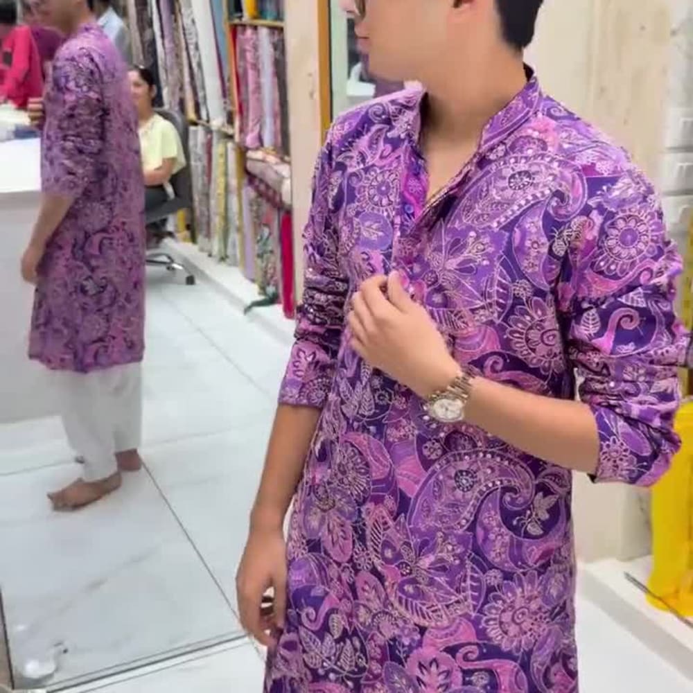 Green and white with gold accents and a multi-colored border Kurta and Shawl Set