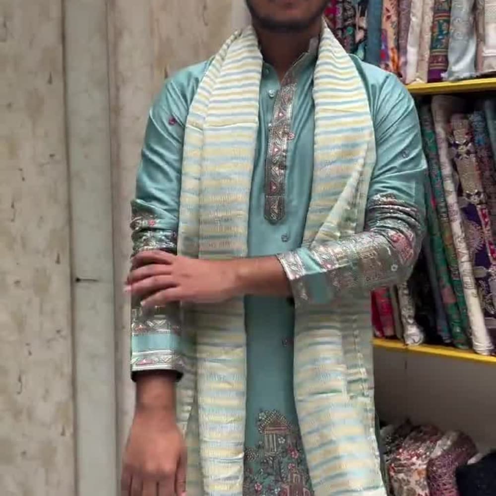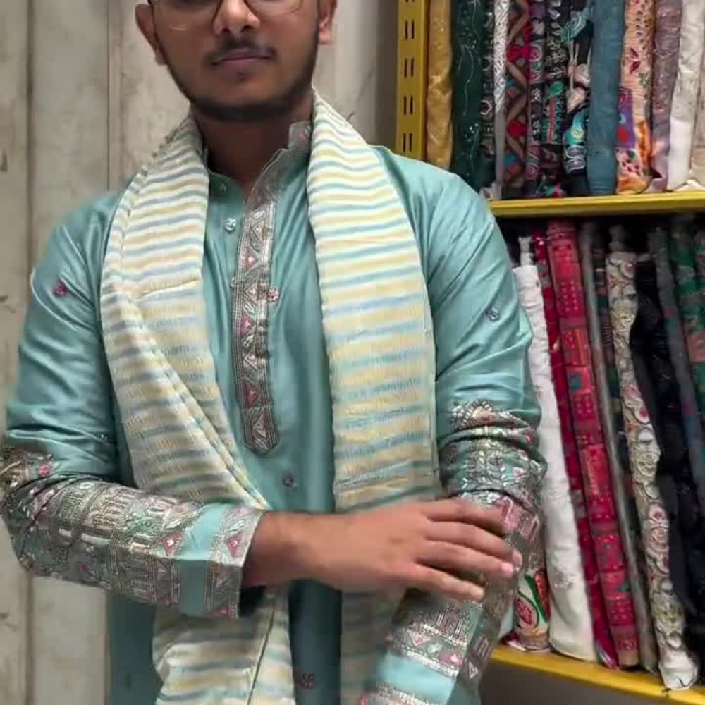 Teal, Silver, Beige Kurta
