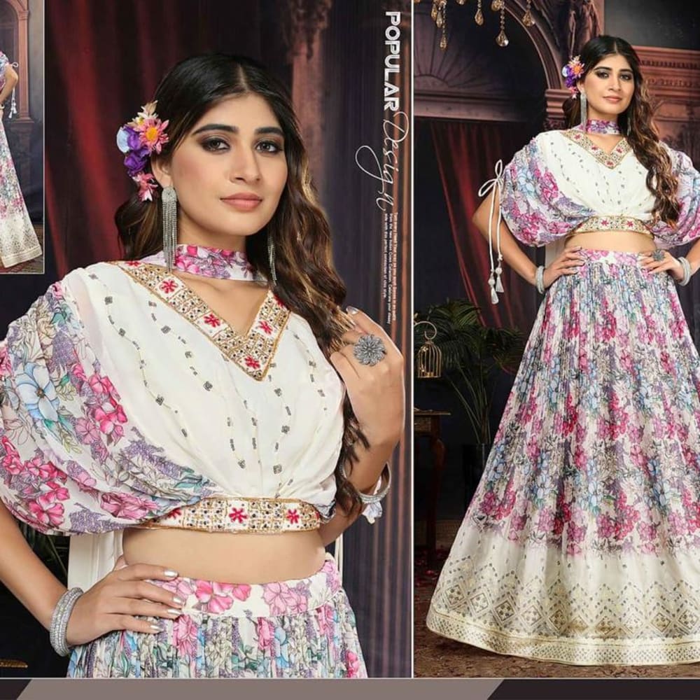 White, Pink, Lavender, Gold, Green Lehenga Choli