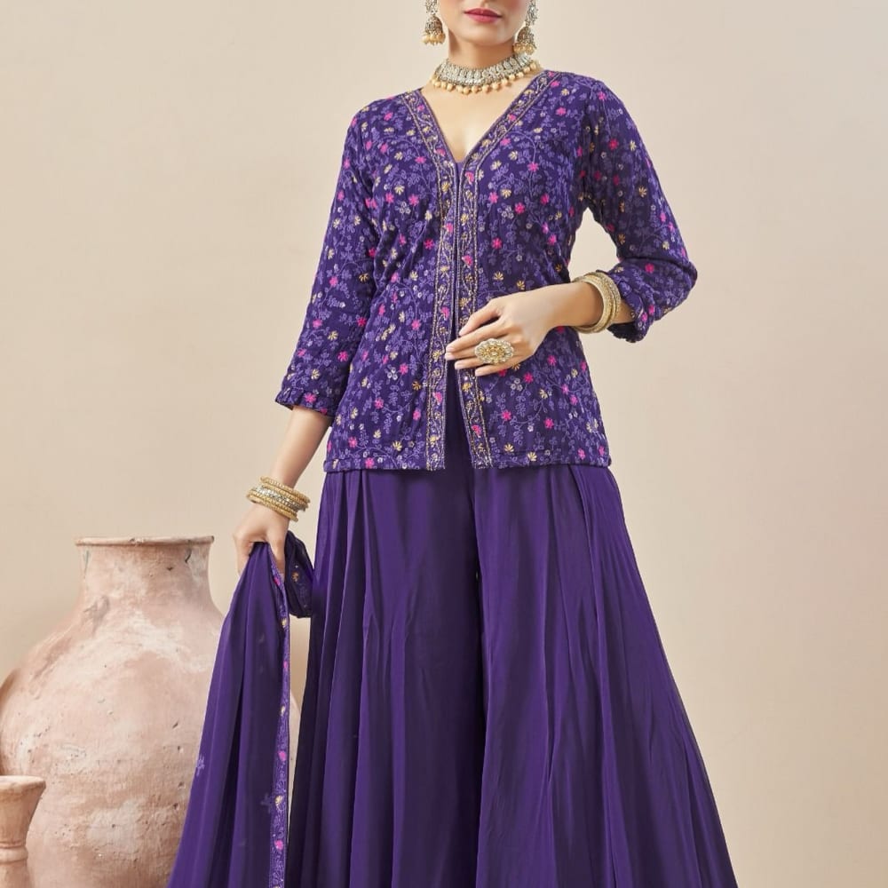 Deep Purple, Pink, Yellow, Gold Sharara Suit