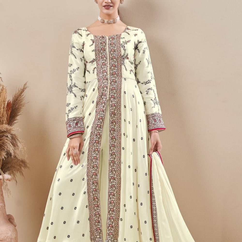 Ivory, Red, Brown, Black Anarkali Suit