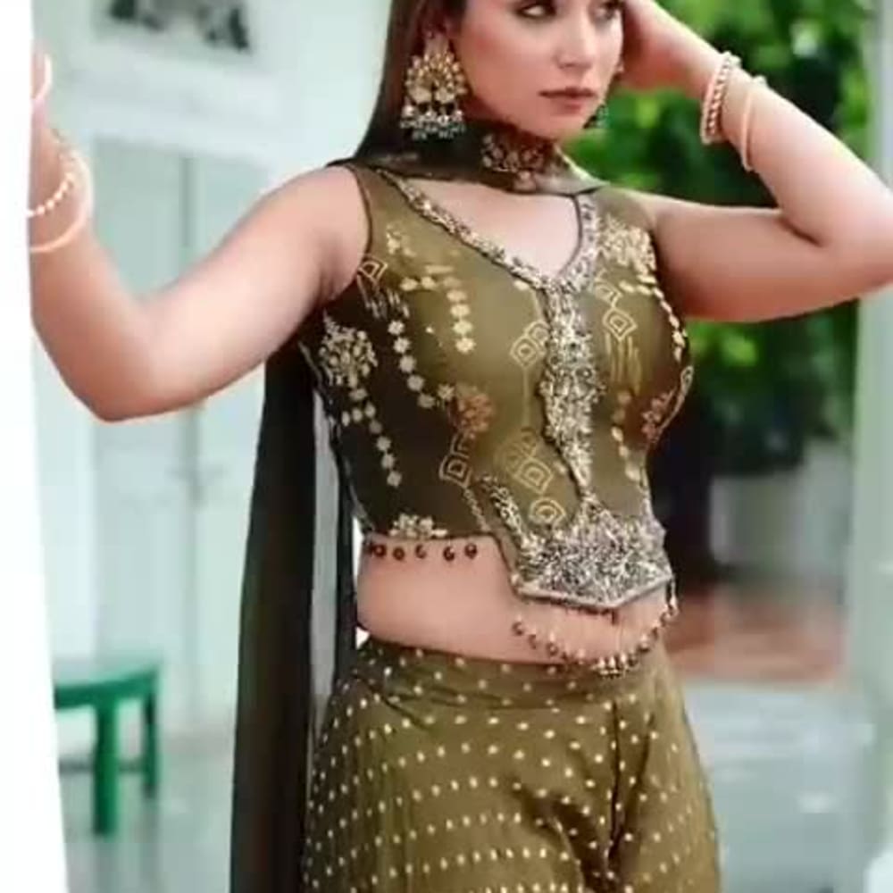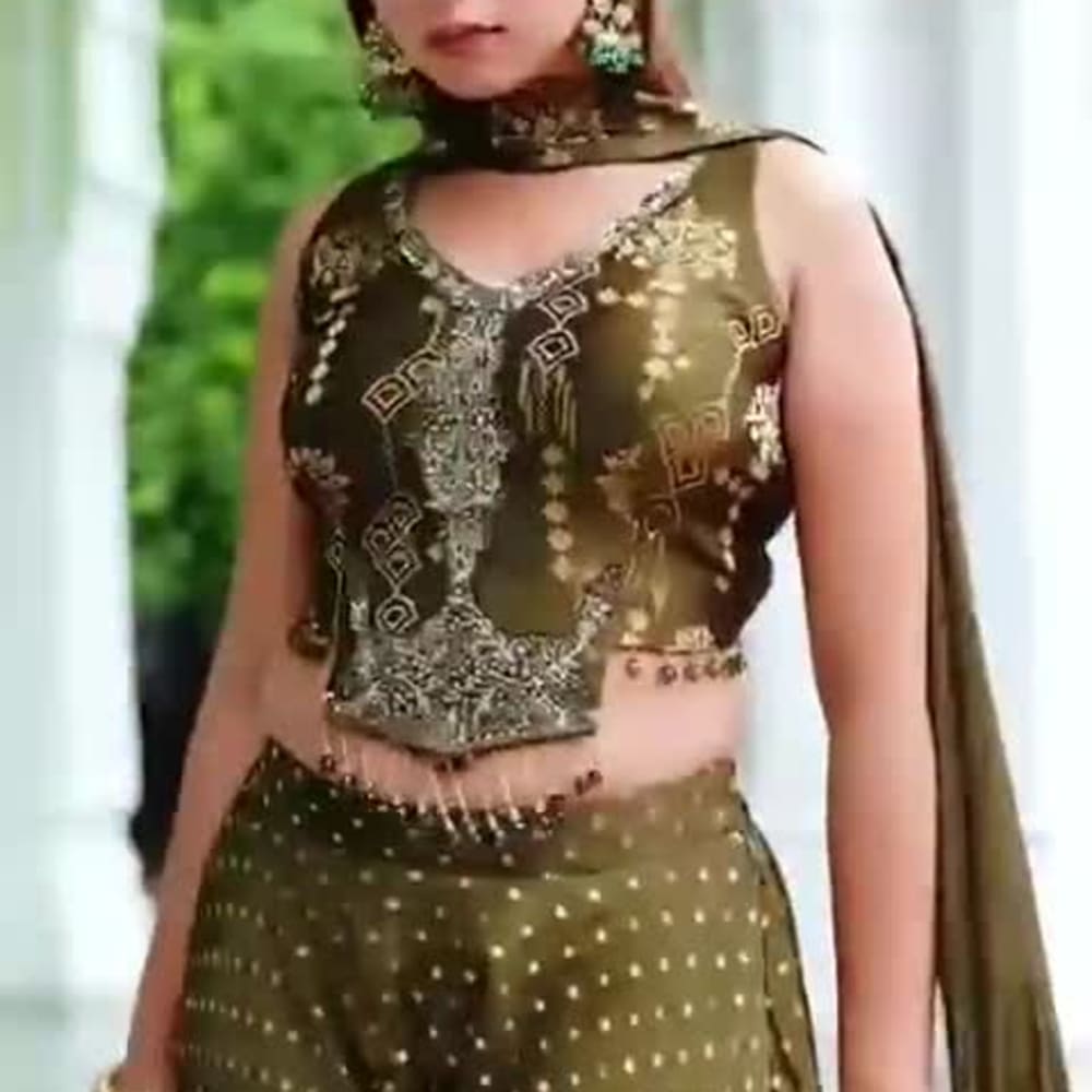 Olive green and gold Lehenga Choli