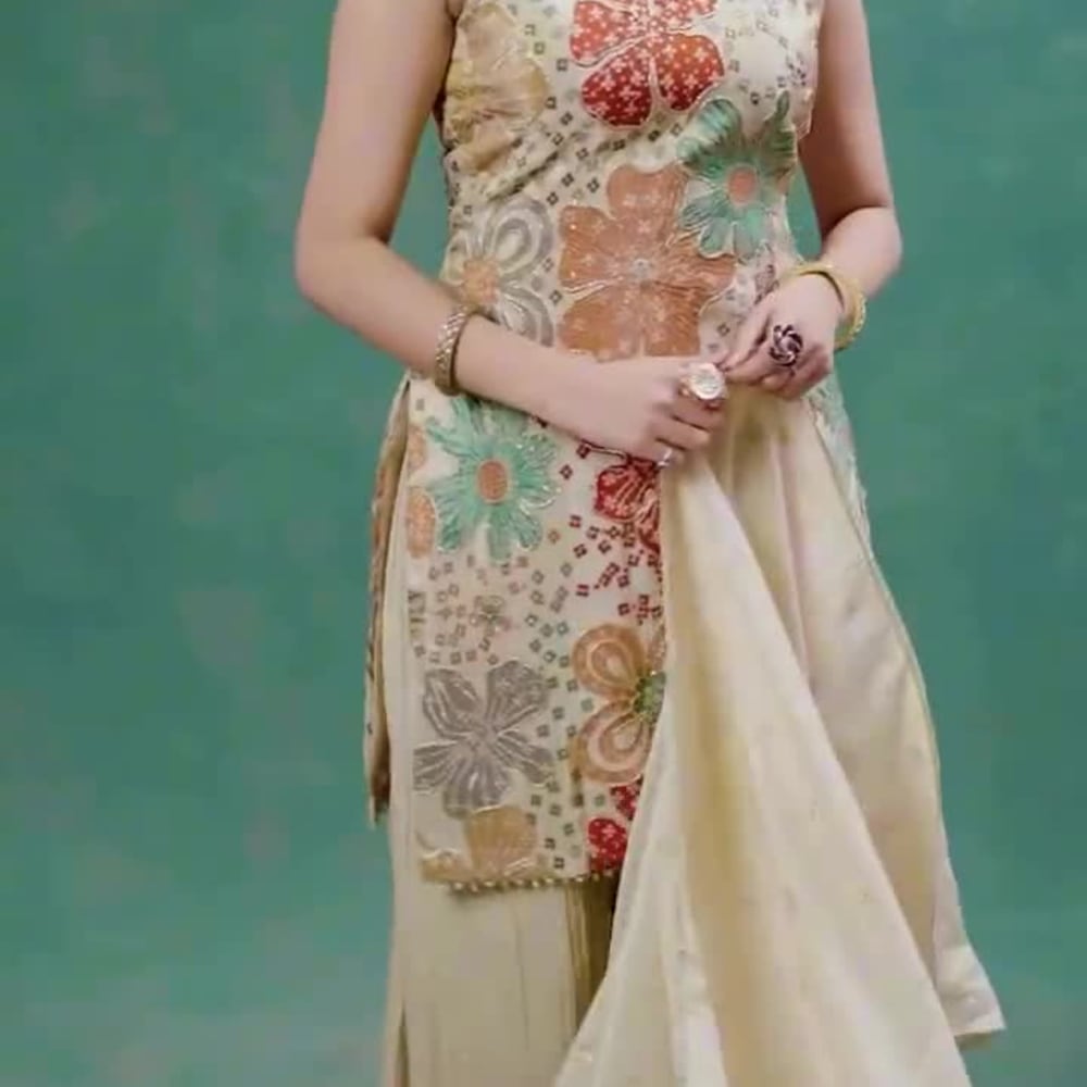 Ivory, Beige, Red, Green, and Gold Sharara Suit
