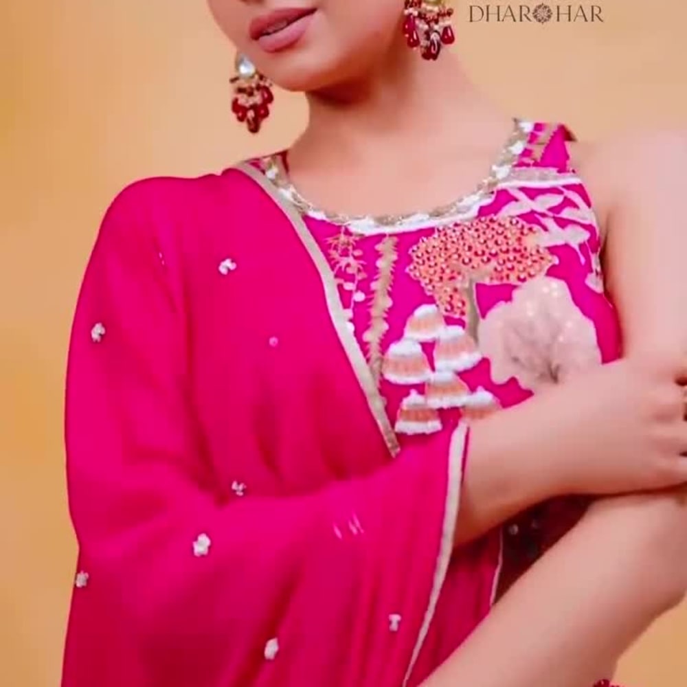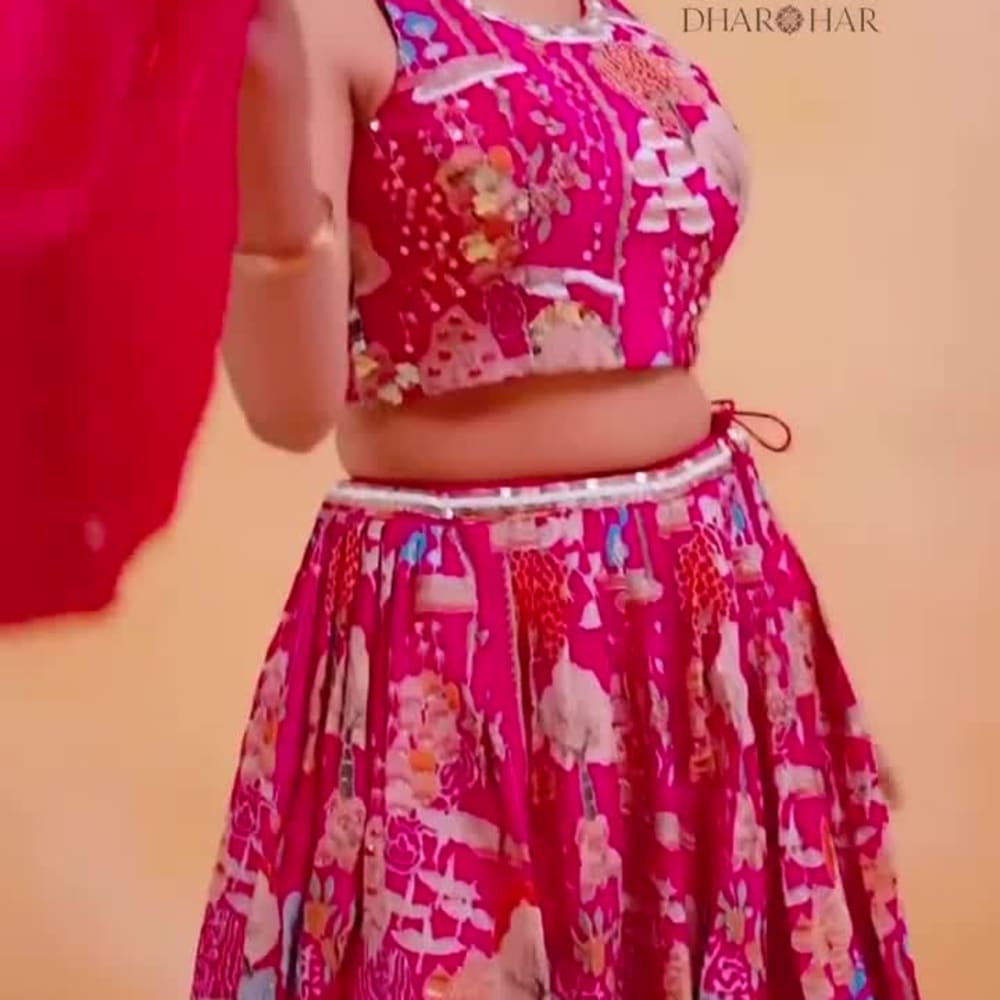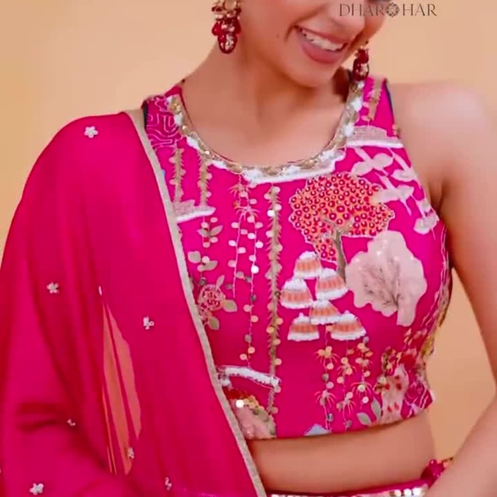 Magenta, with accents of beige, blue, and orange Lehenga Choli