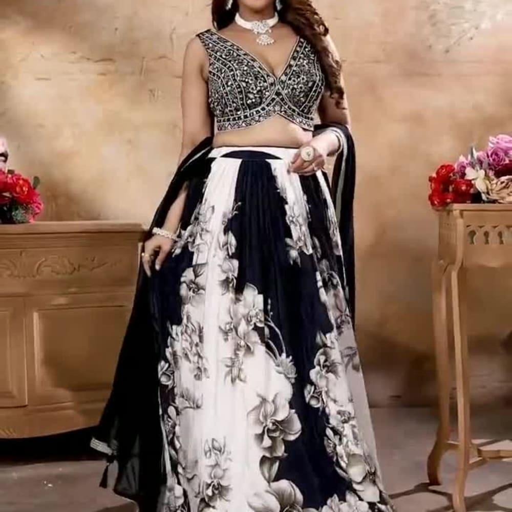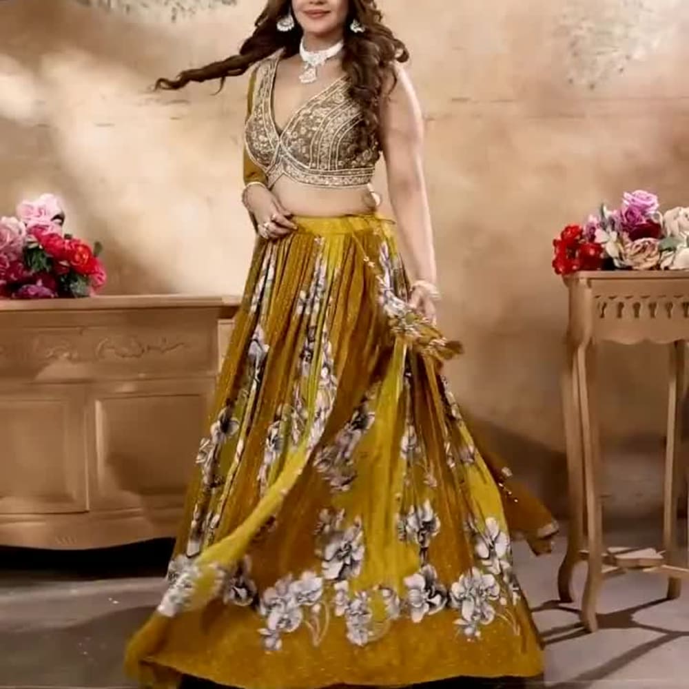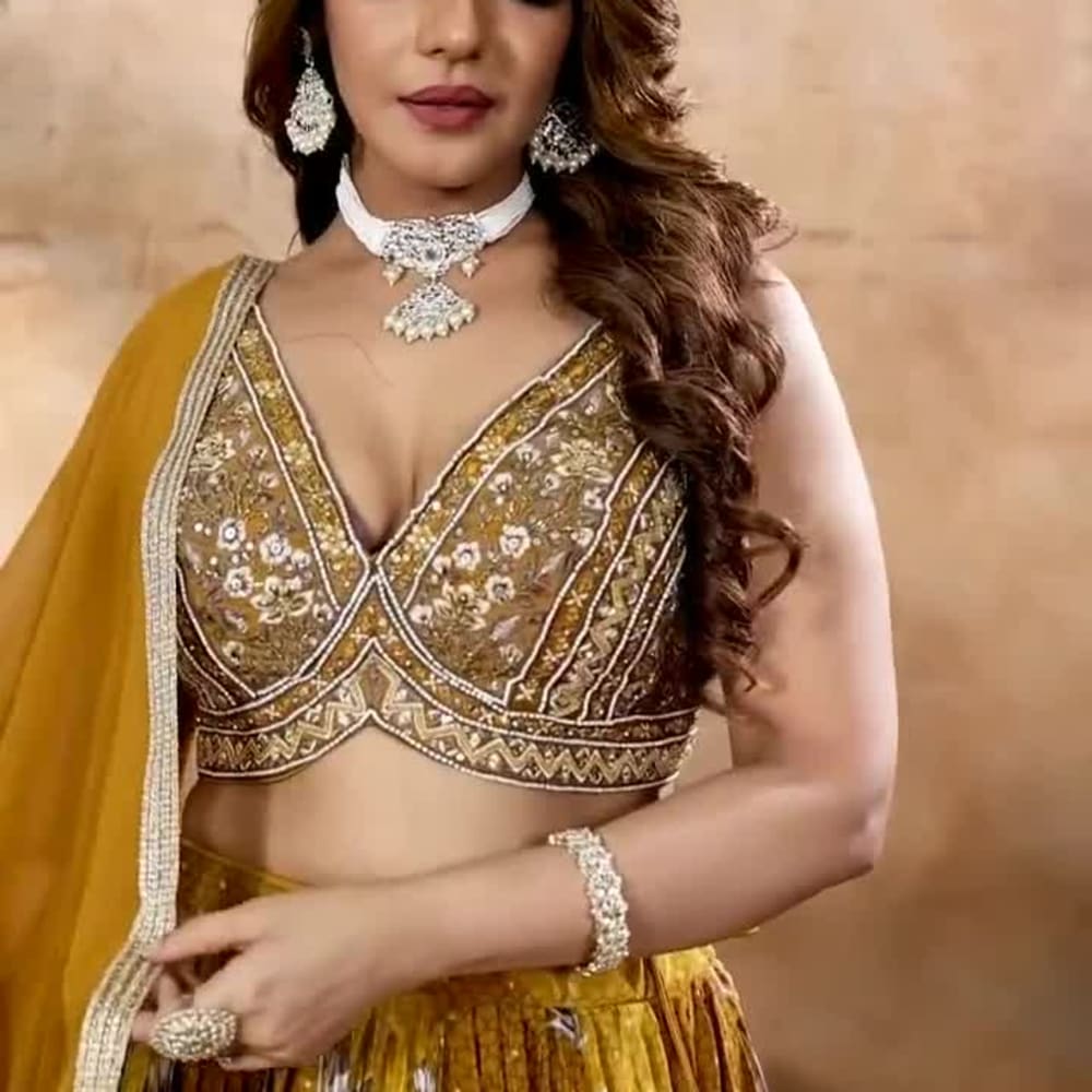 Mustard yellow, gold, and white Lehenga Choli