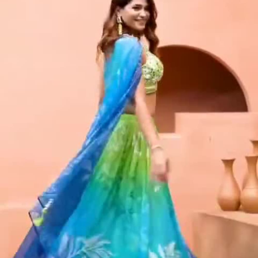 Blue, Green, White Lehenga Choli