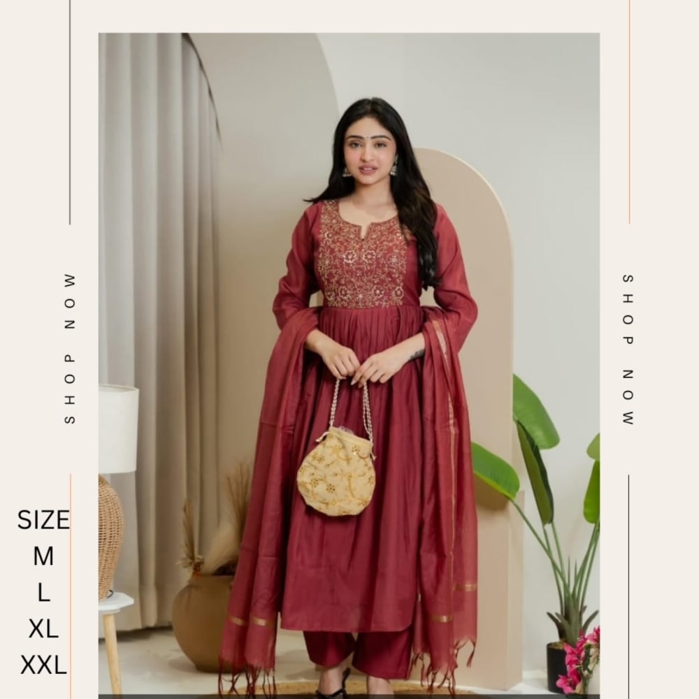Maroon with golden accents Salwar Kameez