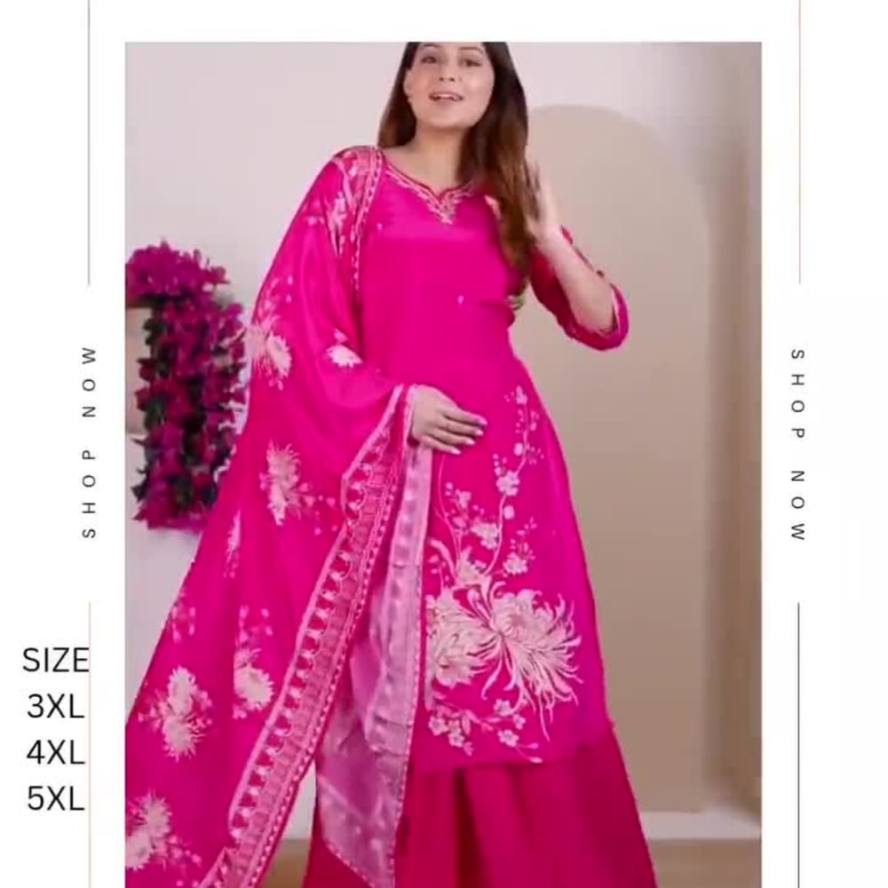 Bright Pink with white embroidery Salwar Kameez with Dupatta