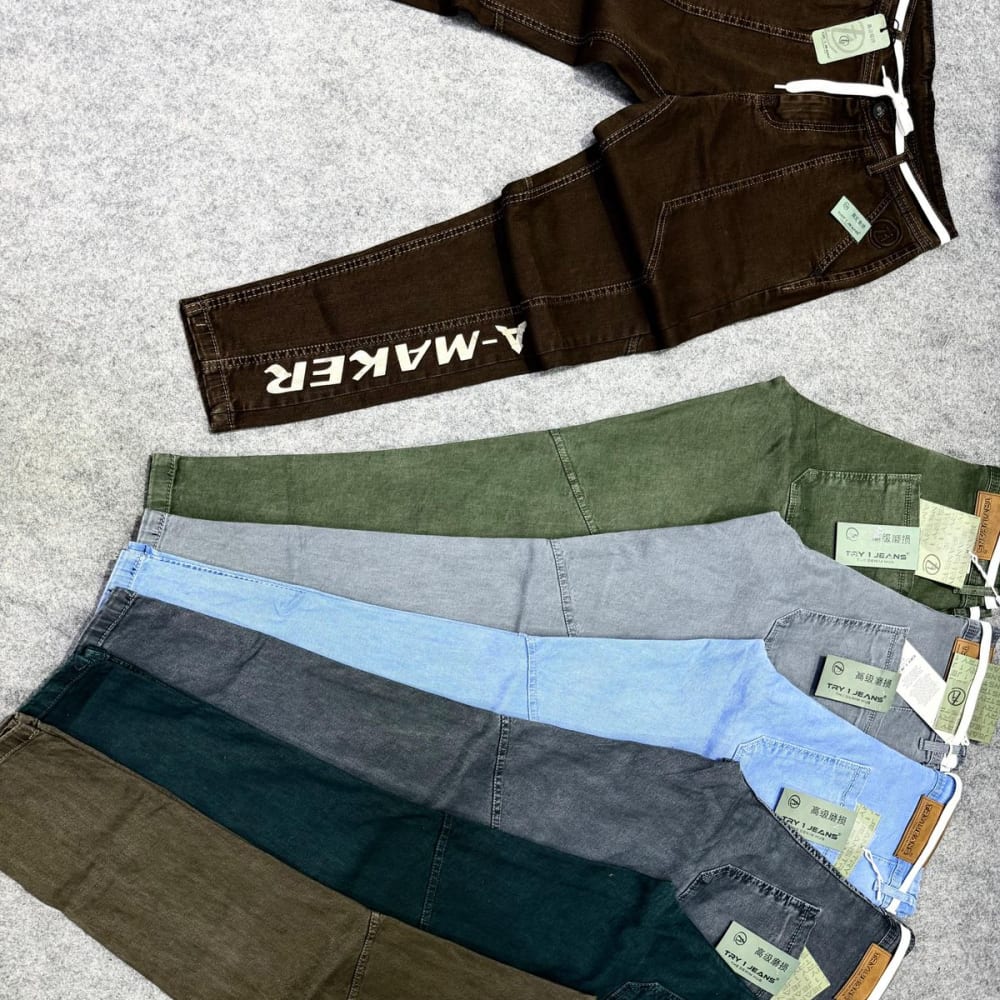 Brown, Green, Gray, Blue, Dark Green, with white lettering Jeans