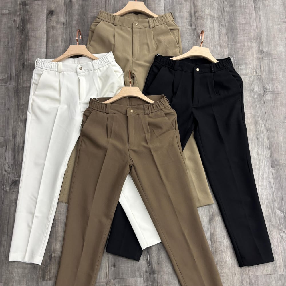 Variety of solid colors including white, black, brown, and tan. Trousers/Pants