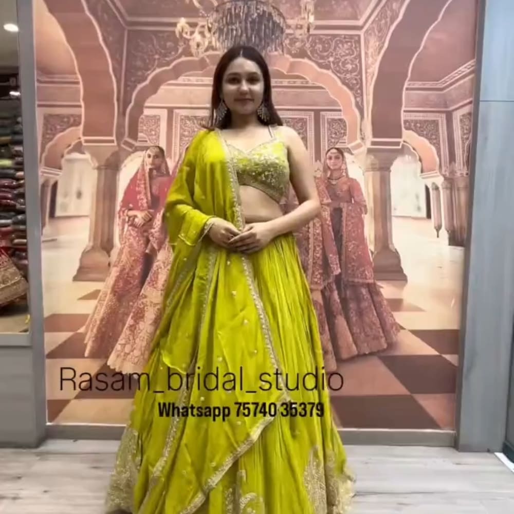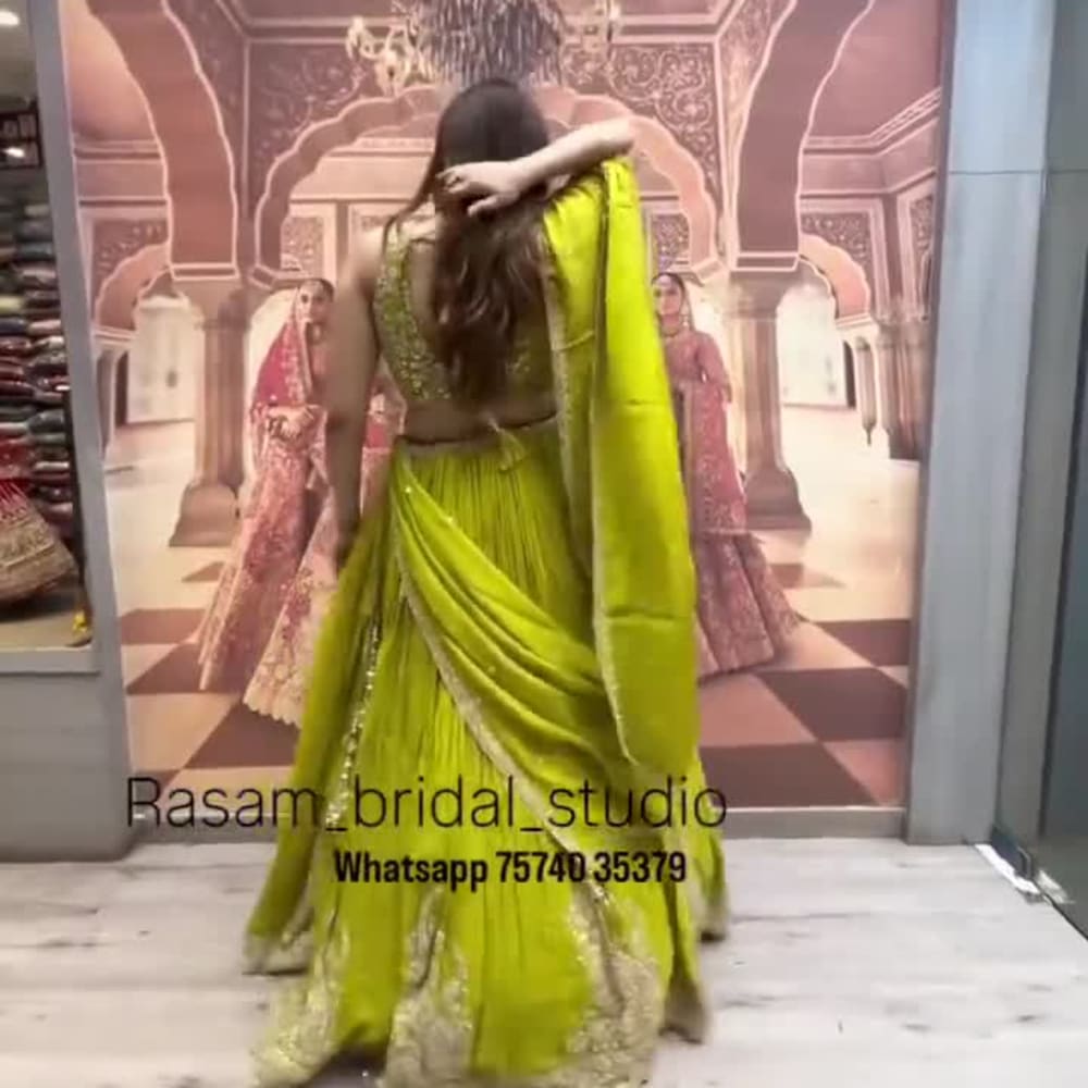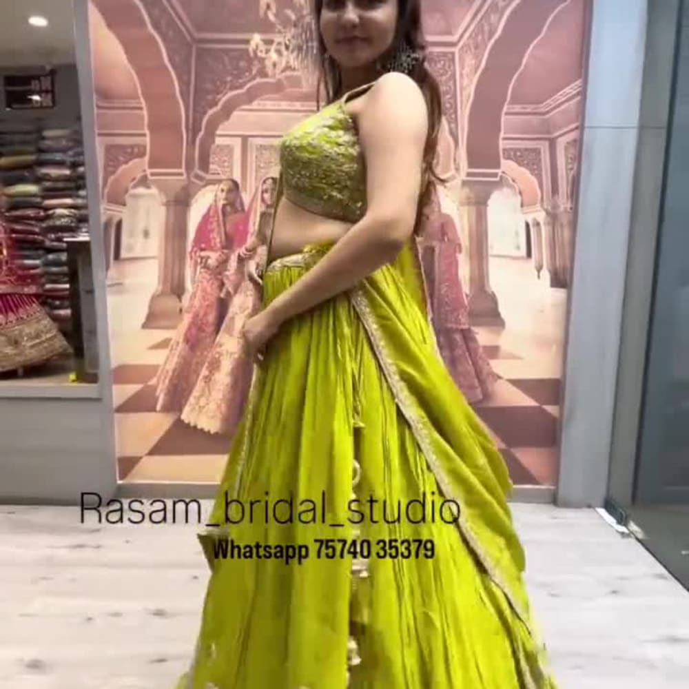 Lime Green and Gold Lehenga Choli