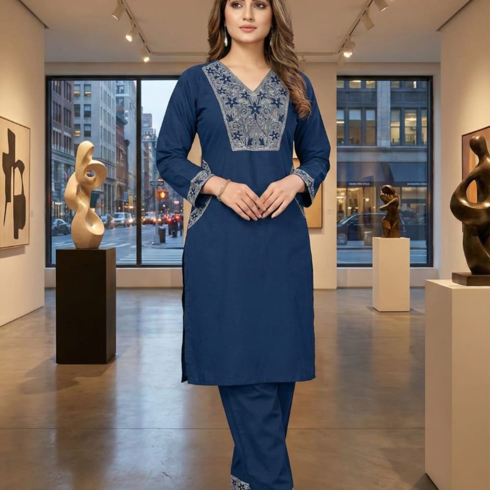 Navy Blue and Silver/White Kurta Set