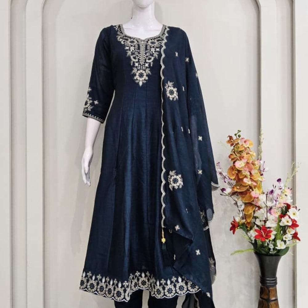 Navy Blue and Gold Salwar Kameez with Dupatta