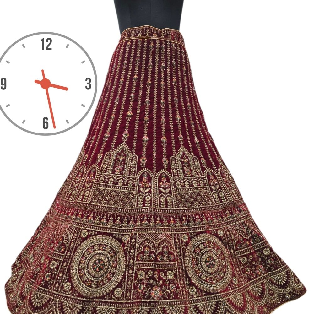 Burgundy, Gold, and touches of Multicolored accents Lehenga
