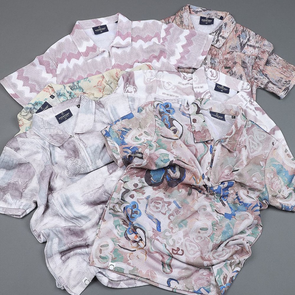 Various patterns with a base of white, brown, blue, and purple Shirt