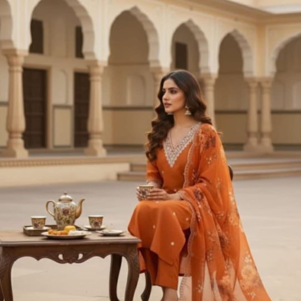 Orange and White Kurta with Pant and Dupatta
