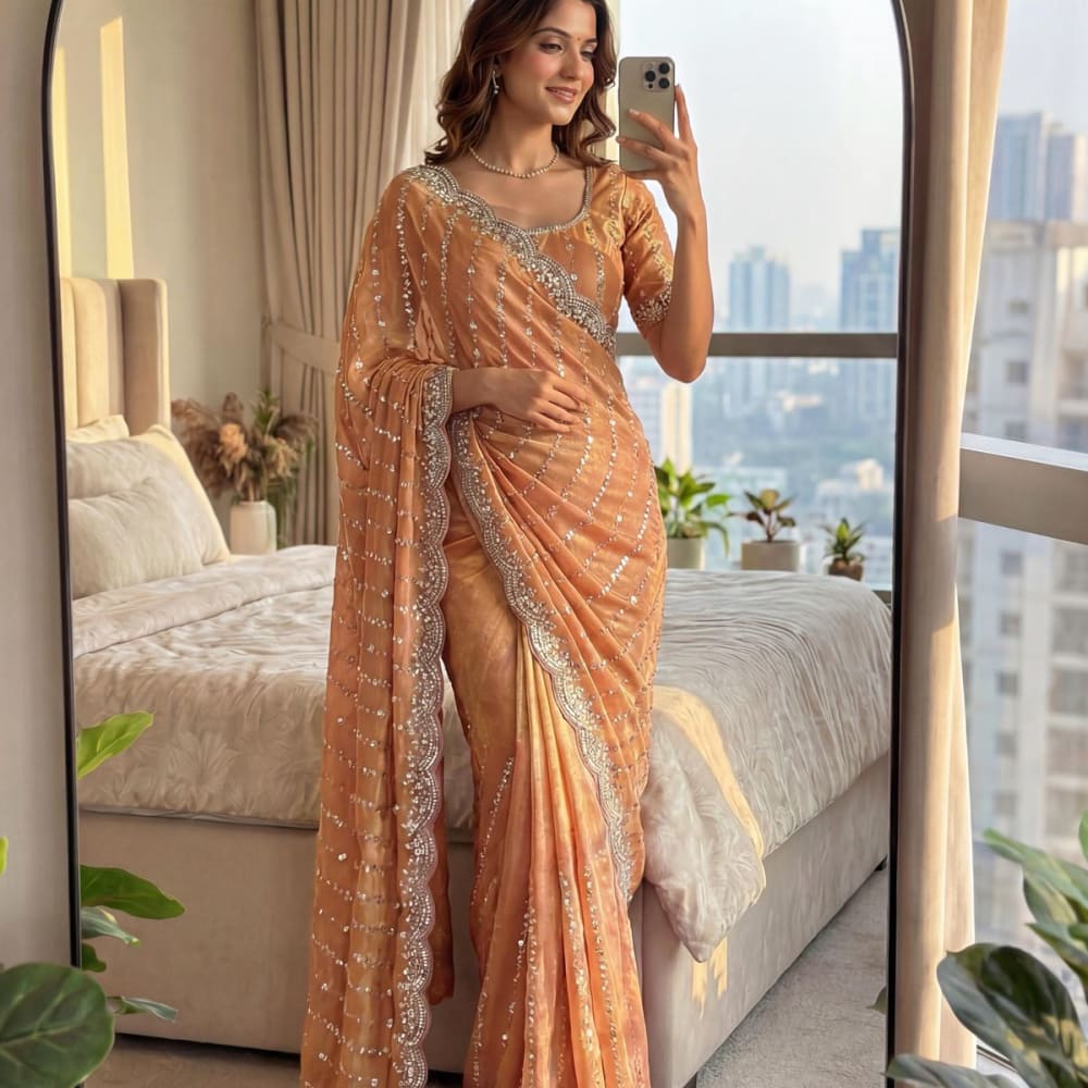 Peach, Silver Saree