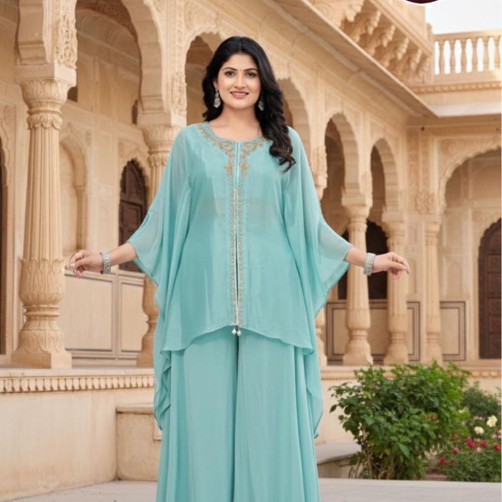 Aqua blue and gold Kurta and Palazzo Set