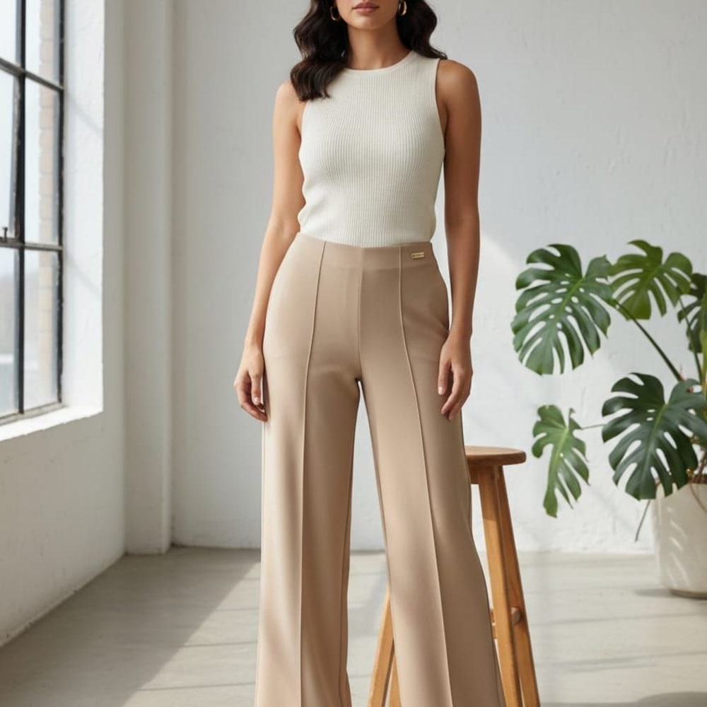 Beige and off-white Pants and Top