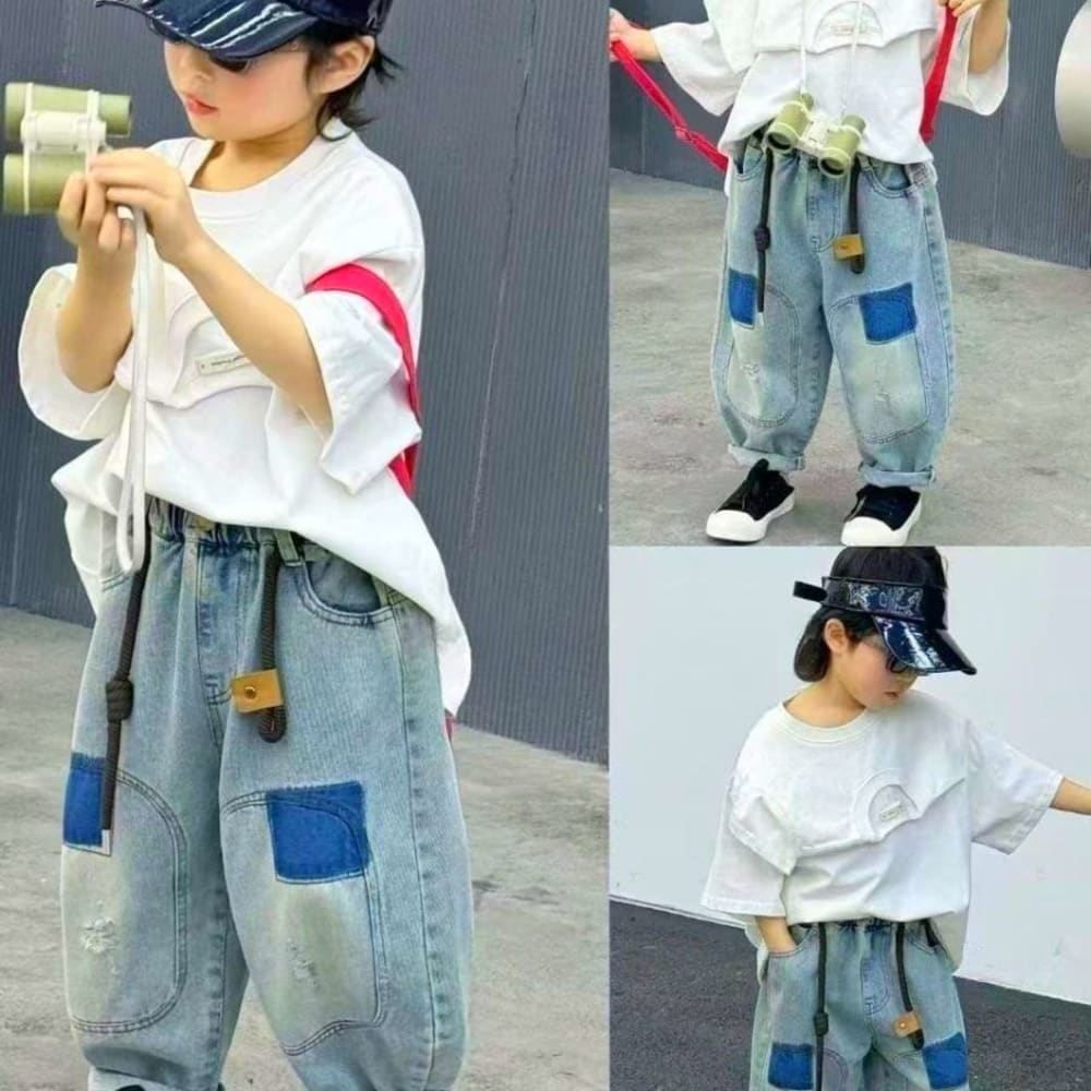 Blue, White, Black Outfit