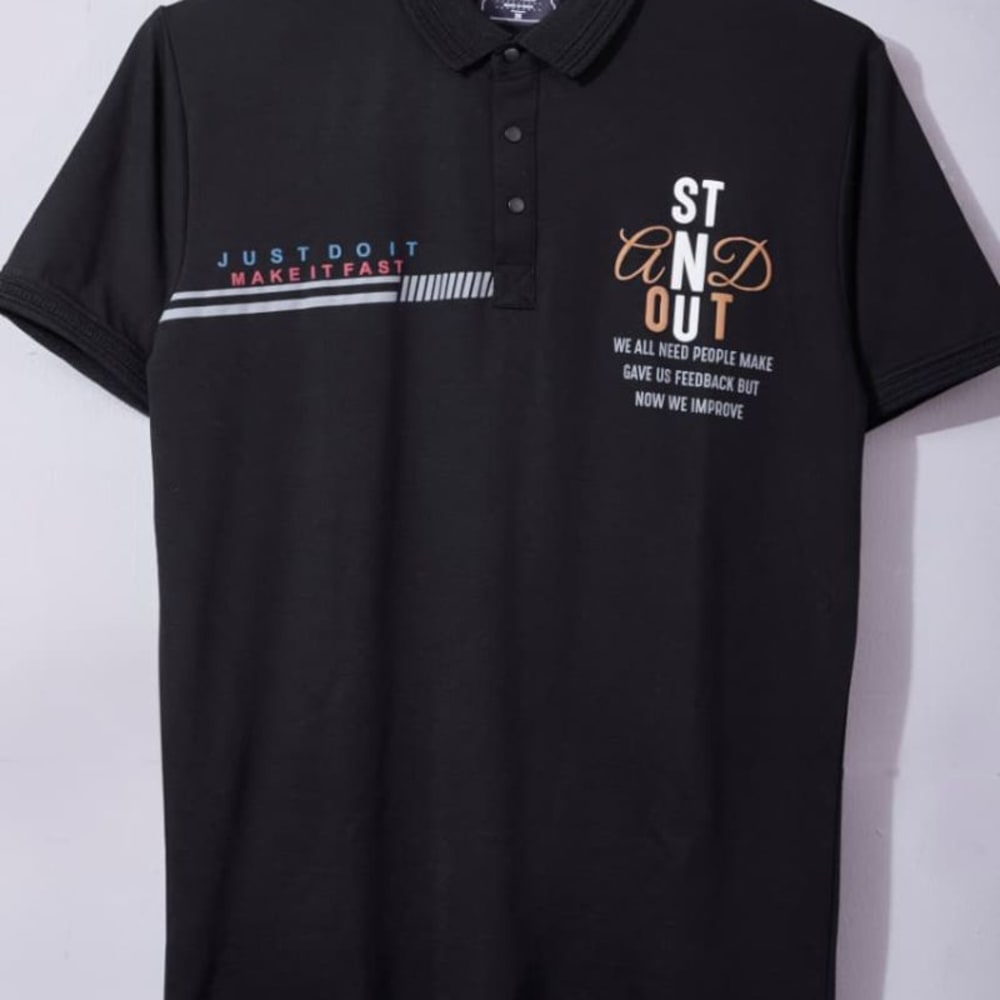 Black with white, blue, light orange accents Polo Shirt