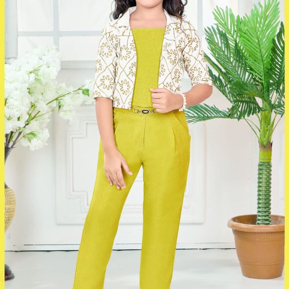 Yellow and White Jumpsuit and Jacket Set