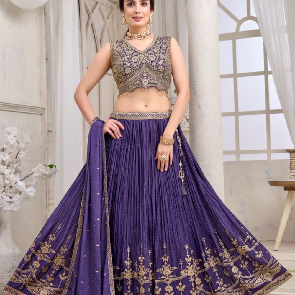 Purple and Gold Lehenga Choli