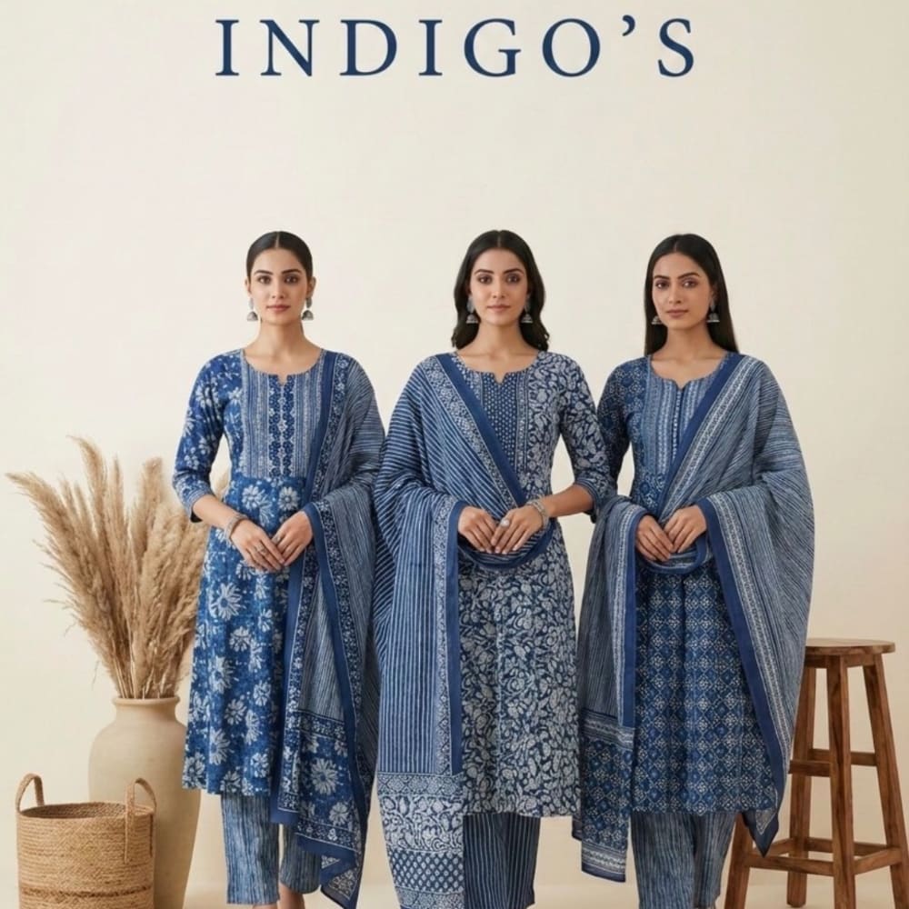Indigo and White Salwar Kameez