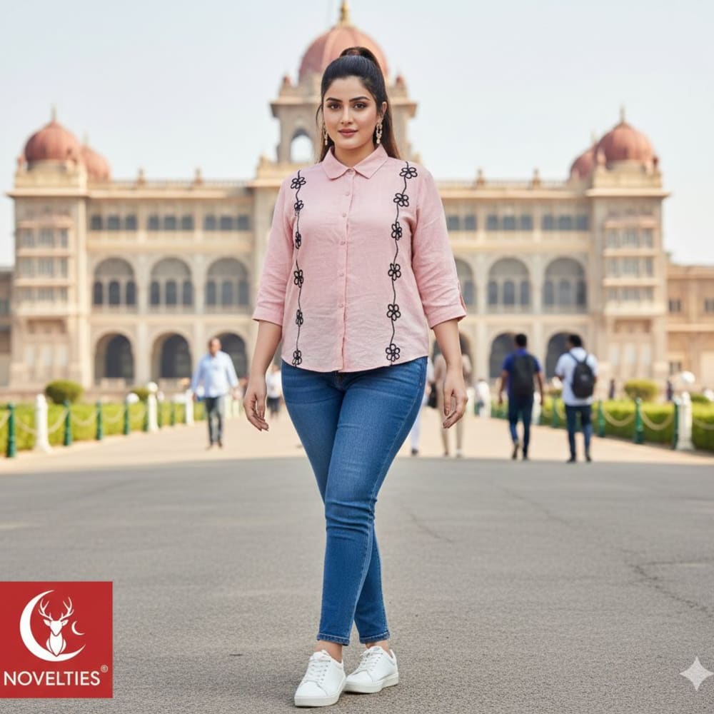 Pink, Black, Blue, White Shirt, Jeans