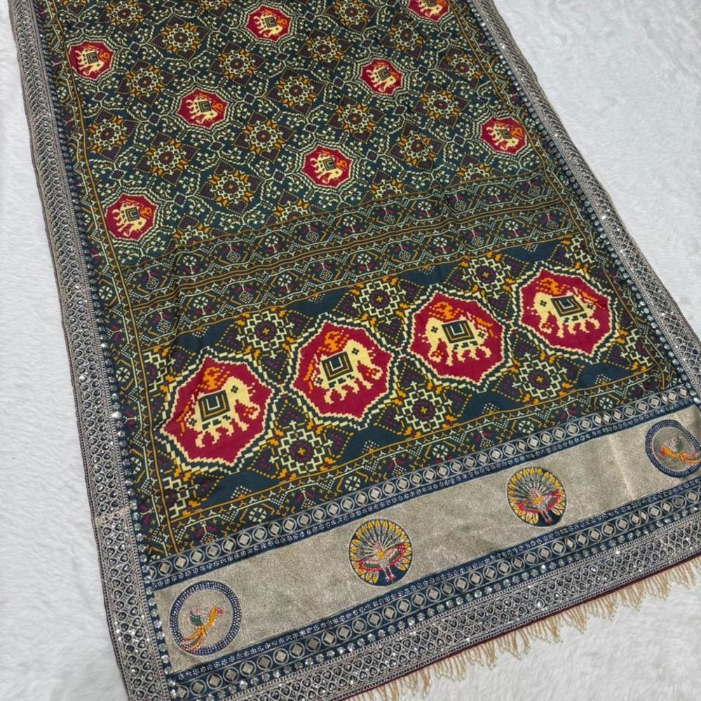 Dark teal, maroon, gold, and cream Shawl/Dupatta