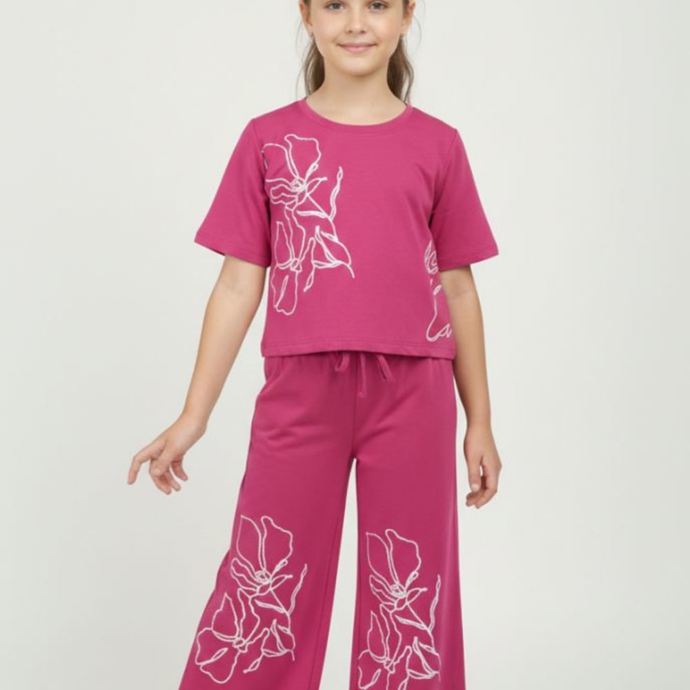 Magenta and White Loungewear Set