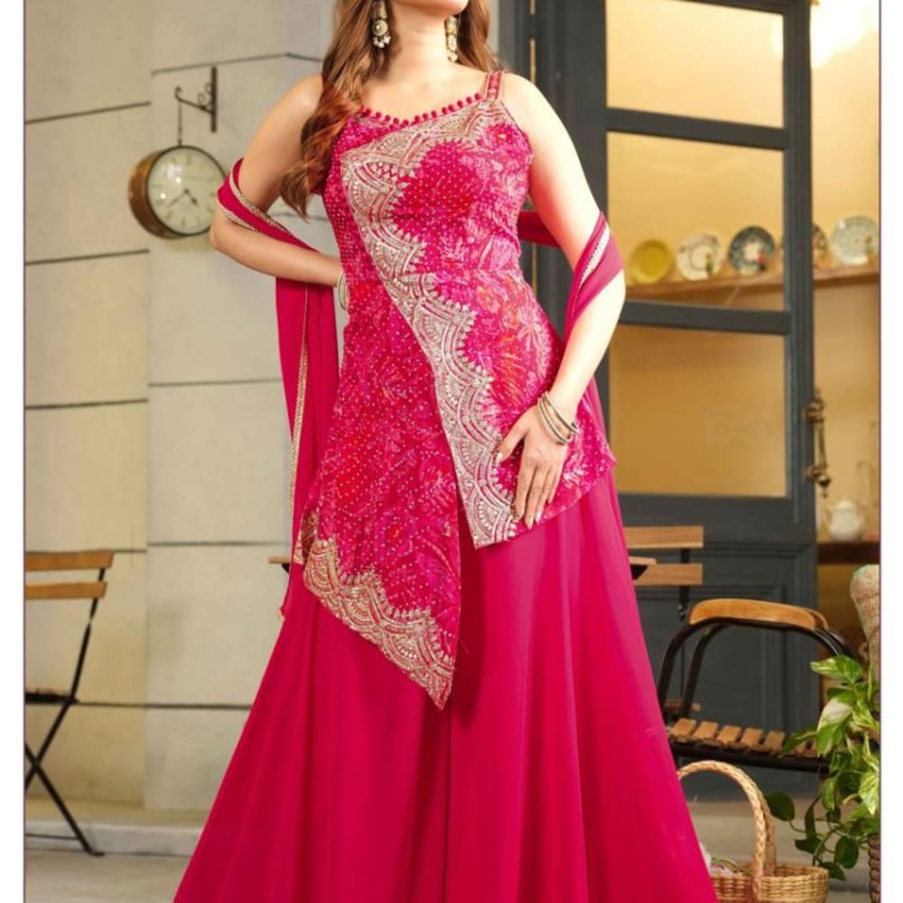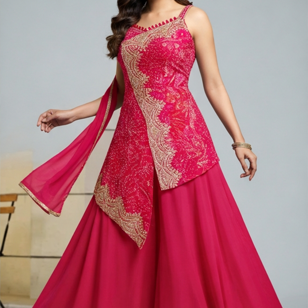 Hot Pink, Gold Anarkali Gown