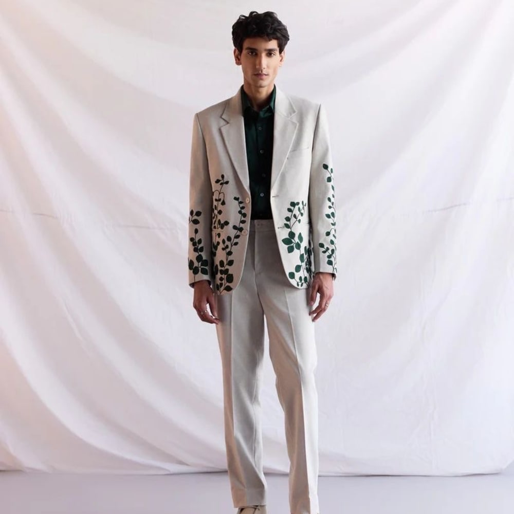 Beige and Green Suit