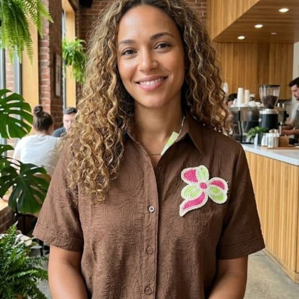 Brown, Pink, Green, White Shirt