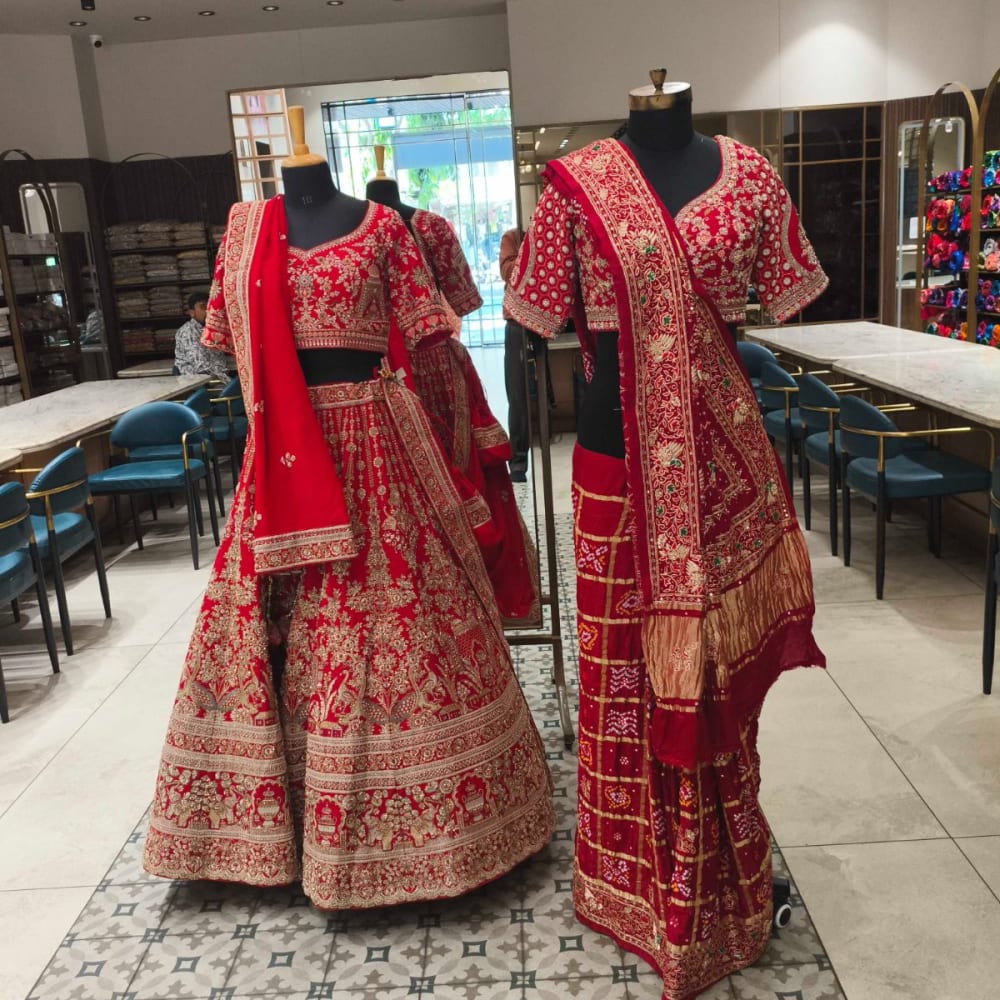 Red, Gold, and Beige Lehenga Choli, Saree