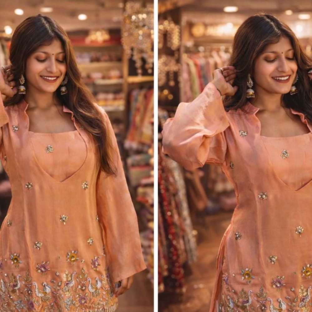 Peach, with multicolor embroidery Kurta