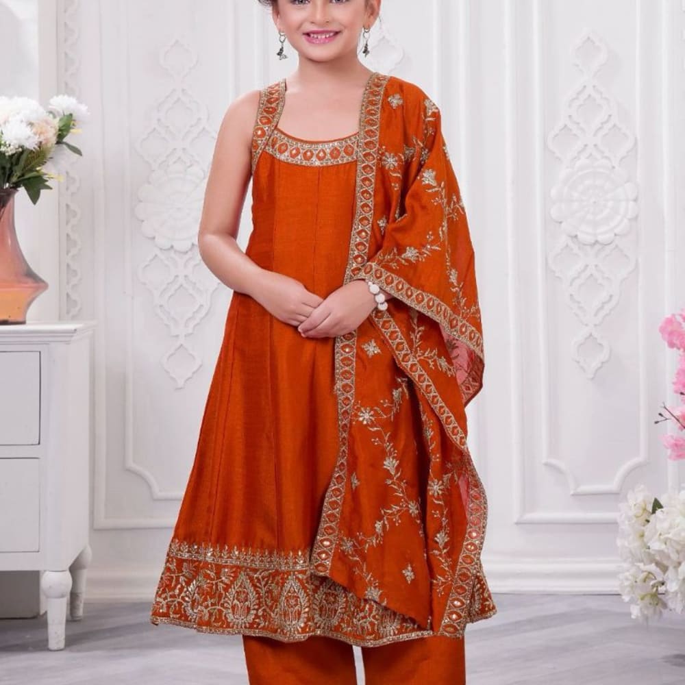 Orange and Gold Salwar Kameez