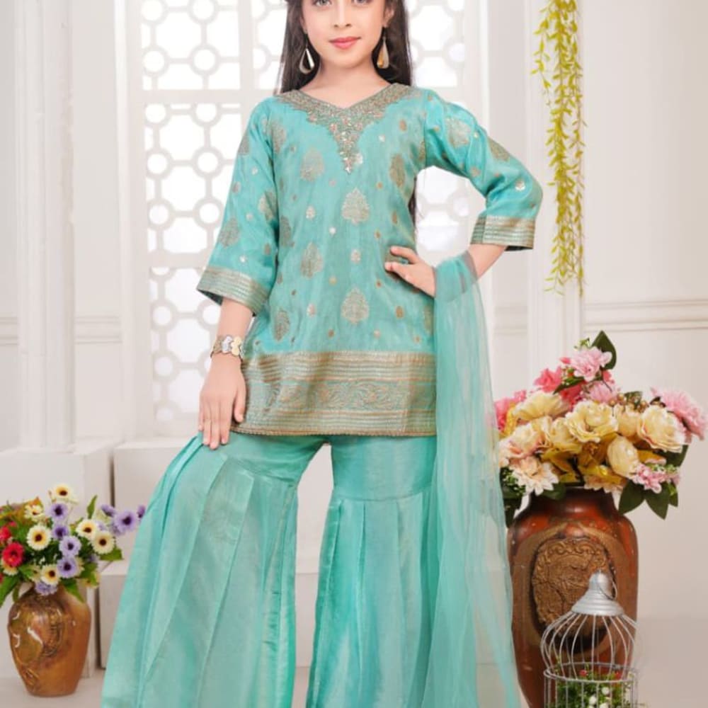 Teal and Gold Sharara Suit