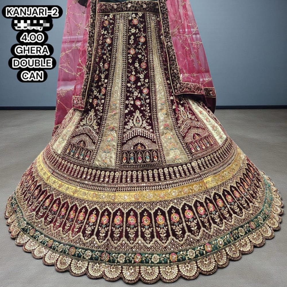 Burgundy, Gold, Pink, Green Lehenga Choli