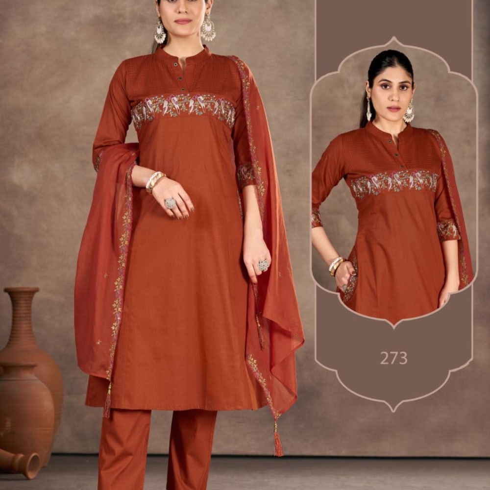 Burnt Orange with Embroidery in various colors Salwar Kameez Suit with Dupatta