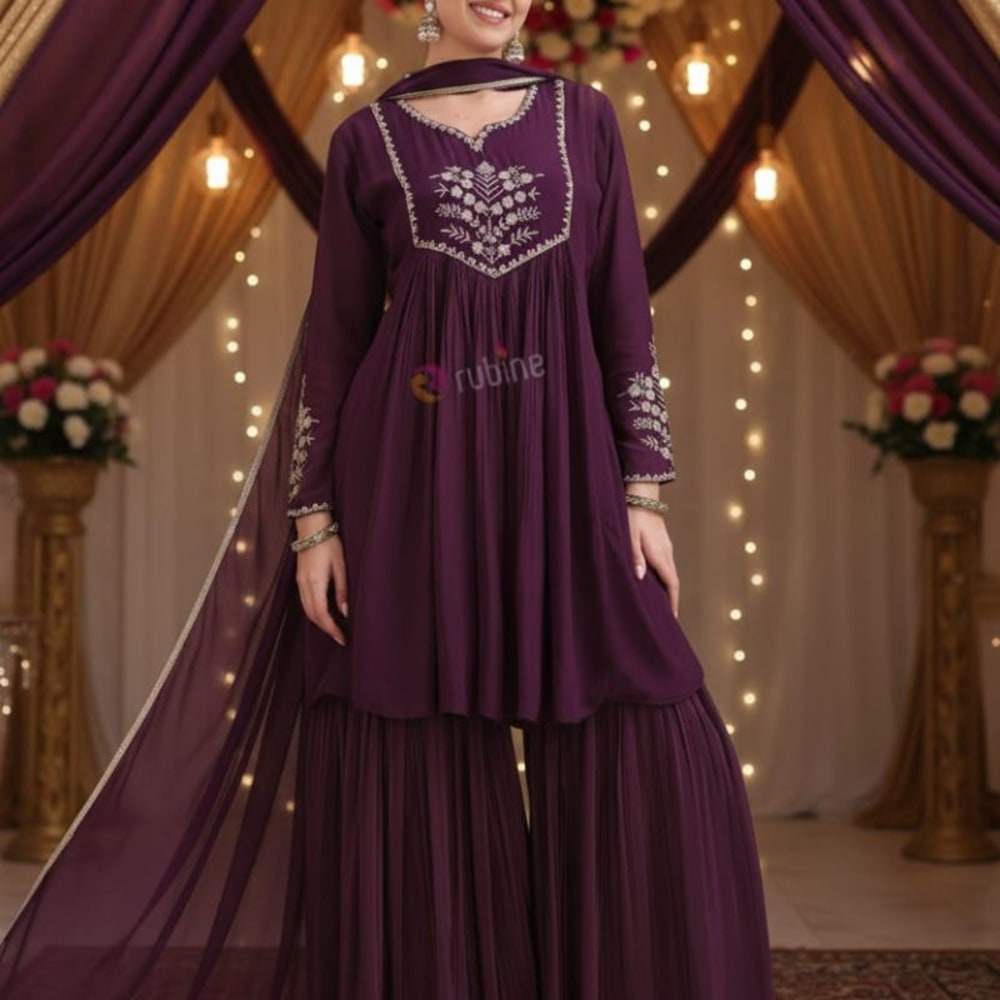 Deep Purple Sharara Suit