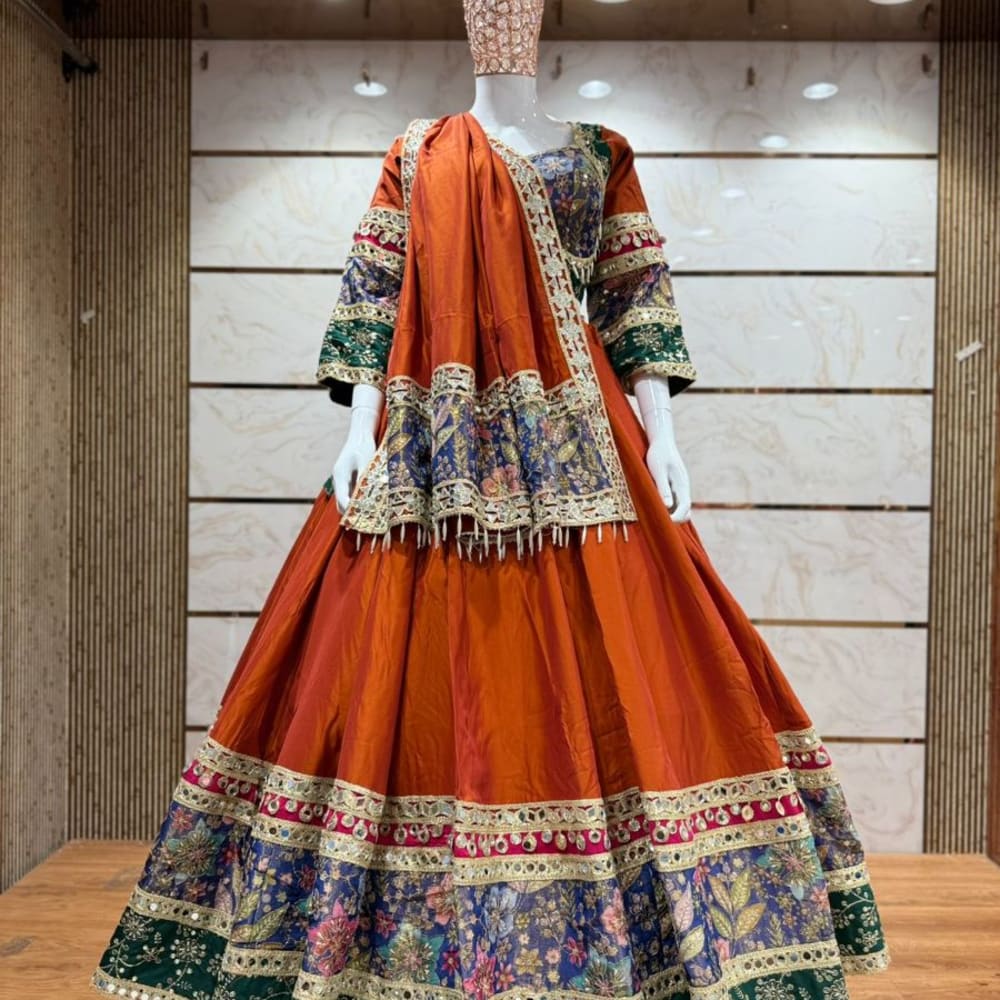 Orange, Blue, Green, Pink, Gold Lehenga Choli with Dupatta