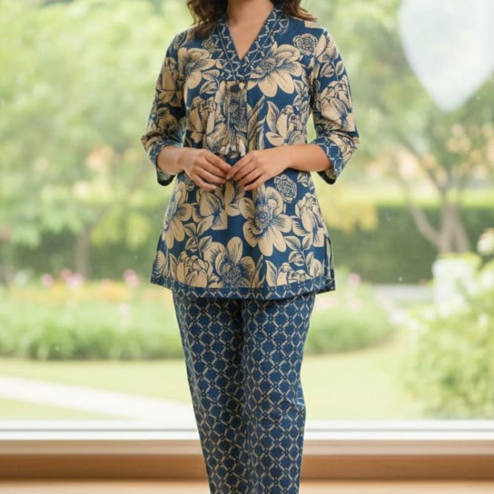 Blue and Beige Kurta and Pants Set