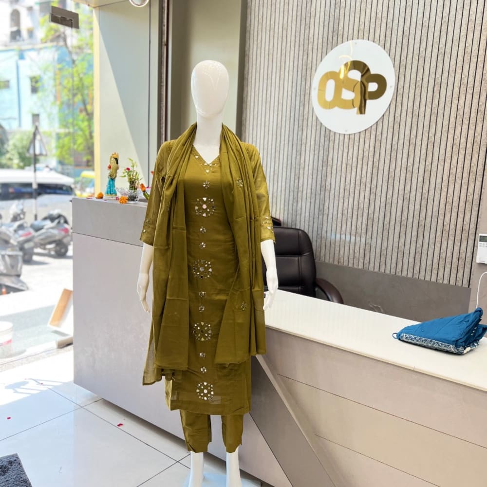 Olive Green Kurta with Pant and Dupatta