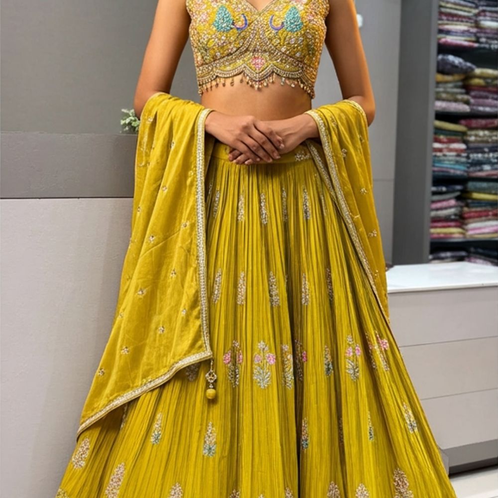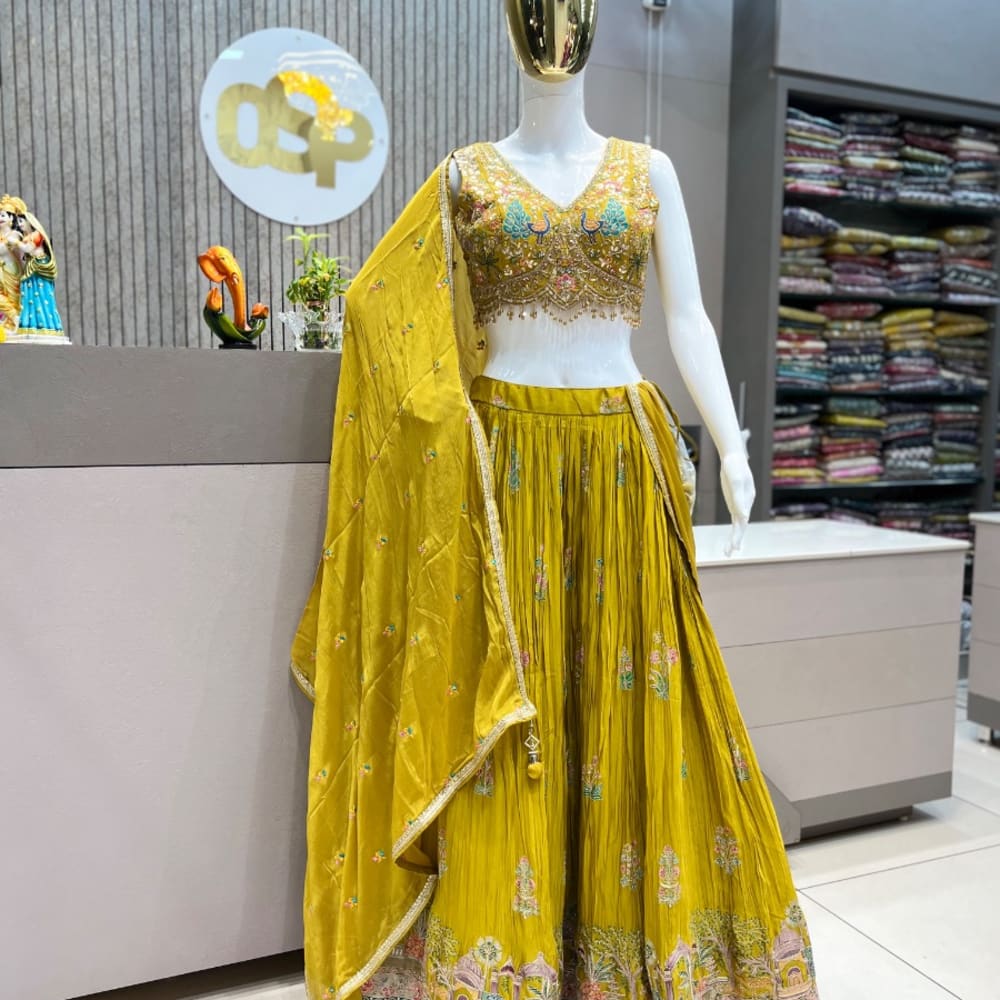 Mustard yellow with multicolor embroidery Lehenga Choli