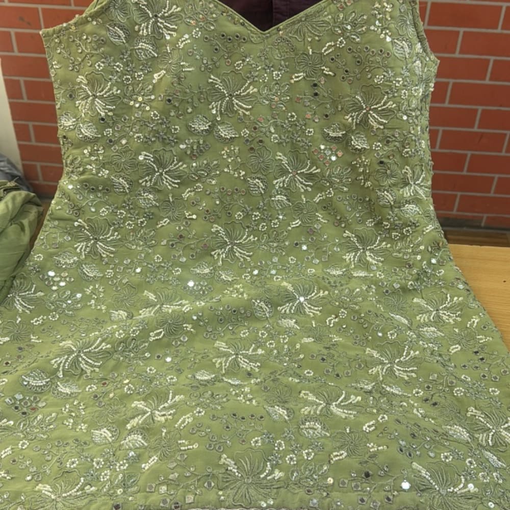 Olive Green with Silver Top/Blouse