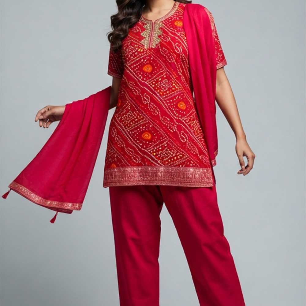 Red, Pink, Yellow, Gold Kurta Set